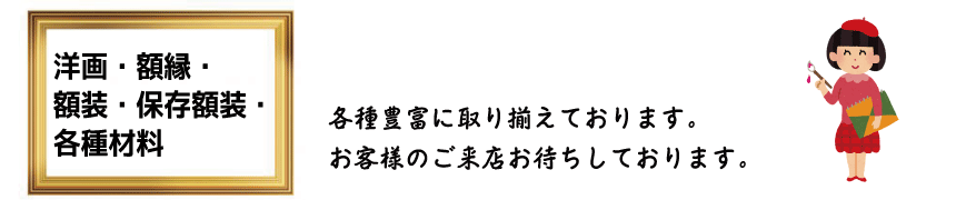 A.洋画、額縁、額装、保存額装、その他各種材料取り揃えております。